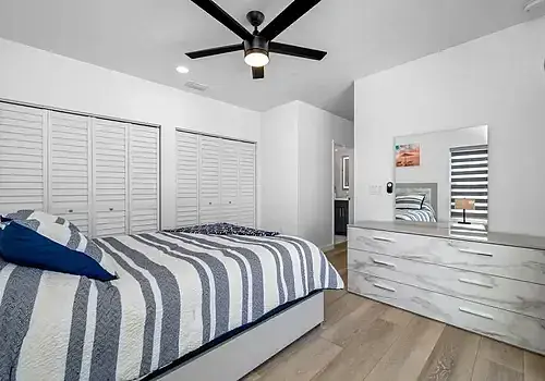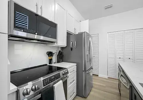 This one-bedroom apartment is also on the first floor and offers a cozy, intimate atmosphere. This unit includes a private patio, making it perfect for those who want a charming and compact yet luxurious home.