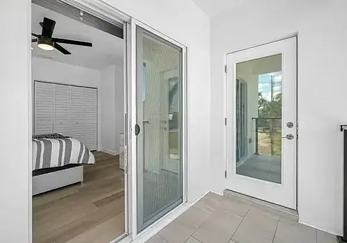 This unfurnished two-bedroom, two-bathroom apartment is located on the second floor. Access is provided through the interior hallway, ensuring a secure and straightforward entry from the building’s main staircase.