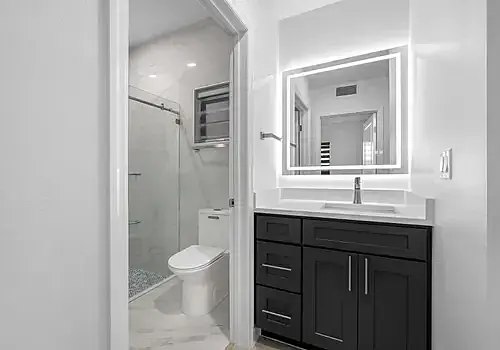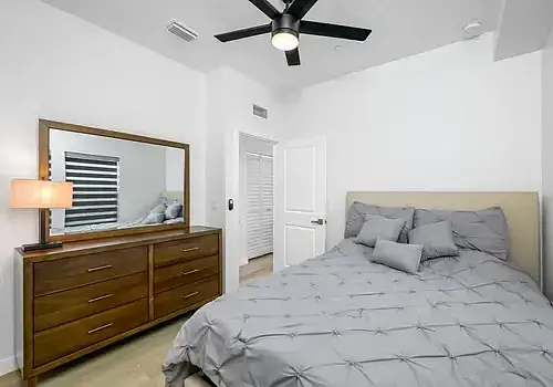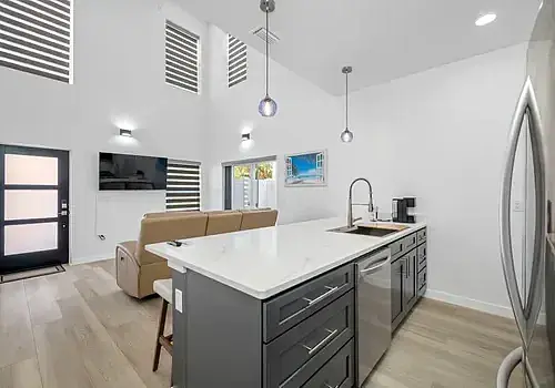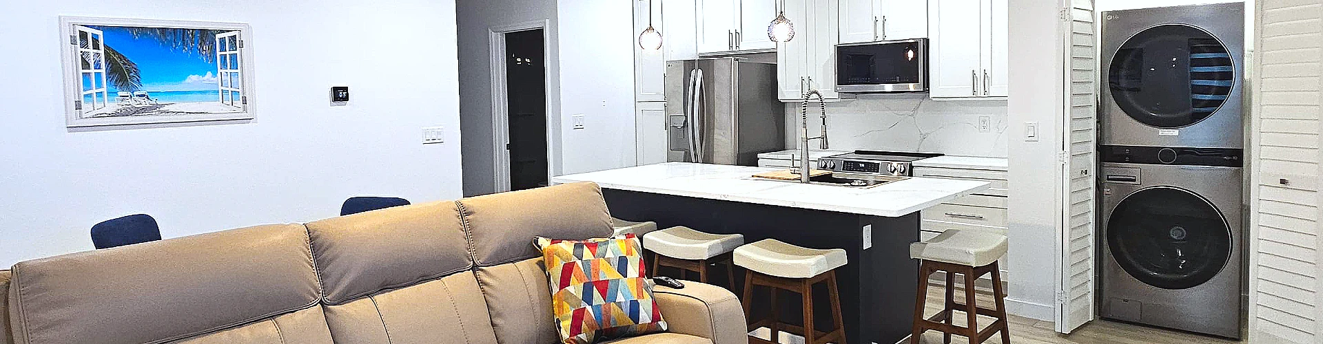Apartment 2 comes fully furnished and includes washer and dryer and a private patio, blending comfort and style with thoughtfully selected Italian pieces. It also comes with the whole-house water filtration and scaler system for a healthier, more convenient living experience.