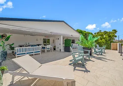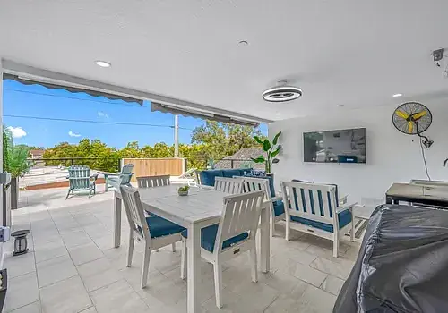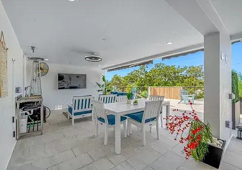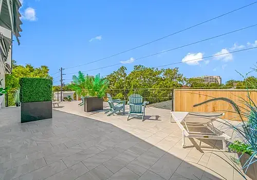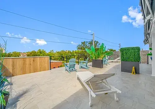 Accessible to all units through the central stairwell, the rooftop terrace is thoughtfully designed for both relaxation and entertaining. It features comfortable outdoor seating, two 75-inch smart TVs, a wine cooler, and a BBQ station. Covered sections provide shade and weather protection, making it an ideal space for events, evening gatherings, or simply unwinding outdoors.